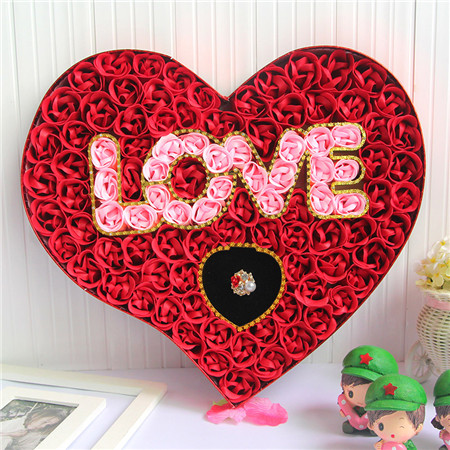 材料包裝: 香皂花:紅色,100朵love+戒指香皂花禮盒;尺寸:約40.5*36*4.8CM