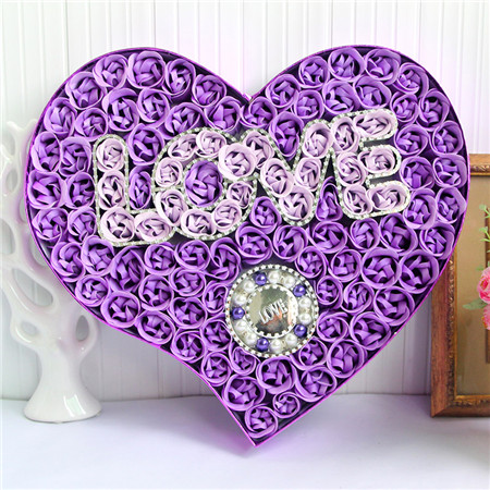 材料包裝: 香皂花:紫色,100朵love+手鏈香皂花禮盒;尺寸:約40.5*36*4.8CM