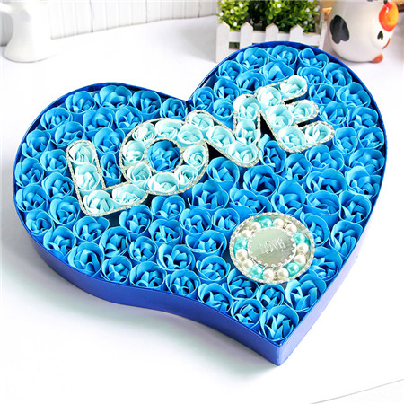 材料包裝: 香皂花:藍(lán)色,100朵love+手鏈香皂花禮盒;尺寸:約40.5*36*4.8CM