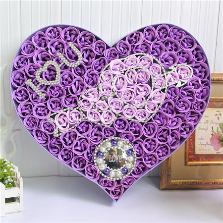 材料包裝: 香皂花:紫色,100朵一見(jiàn)鐘情+手鏈香皂花禮盒;尺寸:寬約40.5com,高約36com,厚約4.5com