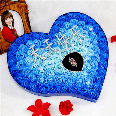 材料包裝: 香皂花:漸變藍,100朵天天快樂+戒指香皂花禮盒;尺寸:40*37*4.5com