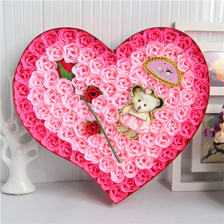 材料包裝: 香皂花:粉色,92朵香皂花+1枝花+小熊;尺寸:40*38*5com;