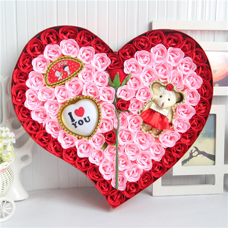 材料包裝: 香皂花:紅色;92朵香皂花+1枝花+小熊+燈;尺寸:40*38*5com;