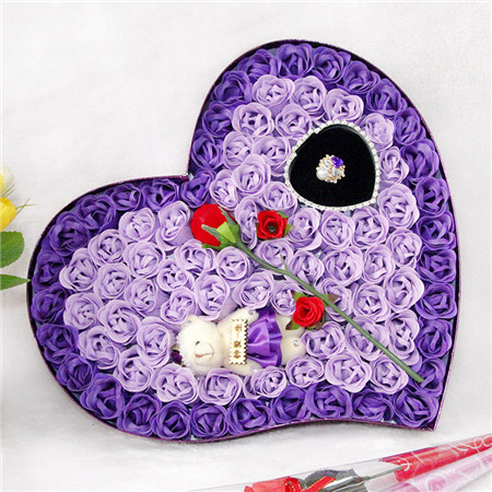 材料包裝: 香皂花:紫色,92朵香皂花+1枝花+小熊+戒指;尺寸:42*40*5cm;