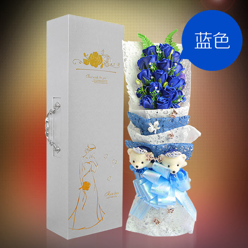 商品簡介:19朵藍色香皂花花束 高檔禮盒包裝。