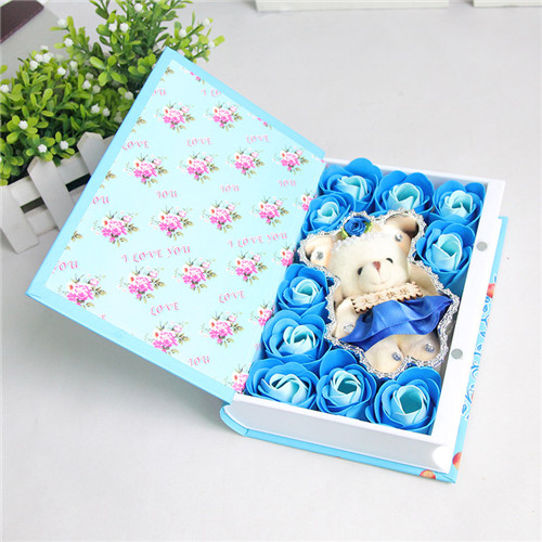 材料包裝: 10朵藍色肥皂花。書本桃李滿天下+小熊