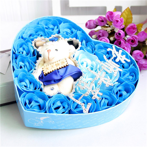 材料包裝: 18朵藍(lán)色香皂花禮盒老師辛苦了+小熊心形禮盒 18朵;長(zhǎng)20.5*寬18.5*高4.5CM;;