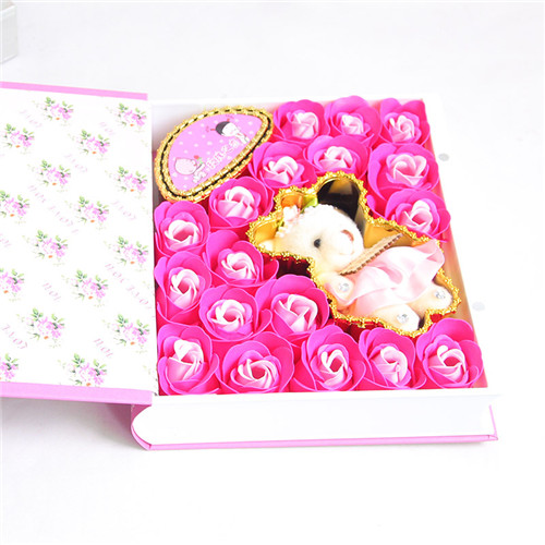 材料包裝: 18朵粉色香皂花禮盒。小熊書本款教師節(jié)快樂