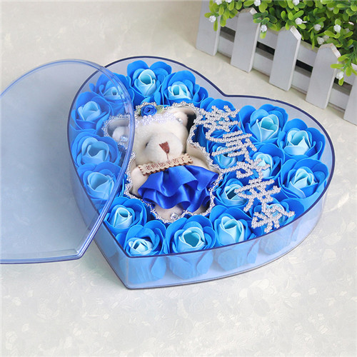 商品簡(jiǎn)介:香皂花老師款藍(lán)色小熊 心型禮盒:18朵;長(zhǎng)20.5*寬18.5*高4.5CM;