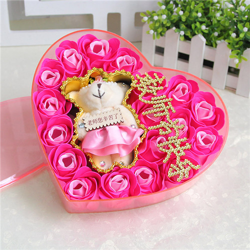 商品簡(jiǎn)介:香皂花老師款粉色小熊 心型禮盒:18朵;長(zhǎng)20.5*寬18.5*高4.5CM;