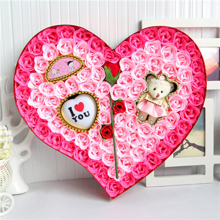 材料包裝: 香皂花:粉色;92朵香皂花+1枝花+小熊+燈;尺寸:40*38*5com;