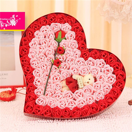 材料包裝: 香皂花:紅色;92朵香皂花+小熊;尺寸:40.5*37.5*4.5com;