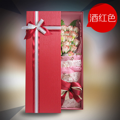 商品簡(jiǎn)介:11朵香皂花清新版酒紅色禮盒,酒紅色包裝