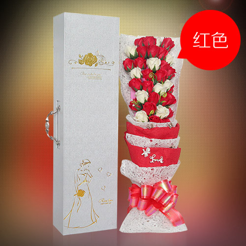 材料包裝: 33朵香皂花紅色白色搭配,高檔禮盒包裝。